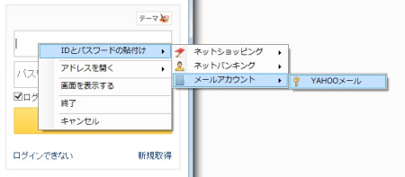 ショートカットにより自動ログインできないサイトも直接開いているサイトへIDとパスワードを自動入力してログインできます。