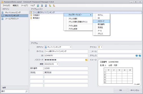 暗証カード画像を取込んでログイン時の手間を省くことができます。