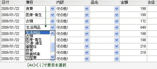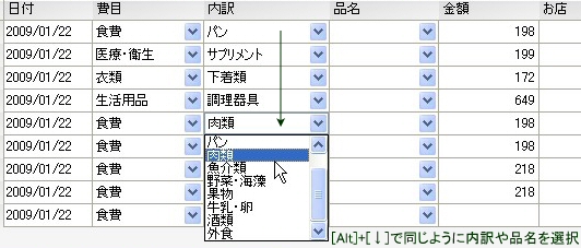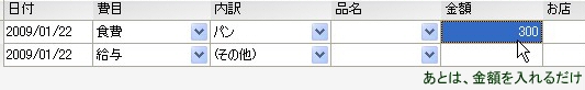 2)費目と内訳が自動で選択されるので金額を入力するだけ