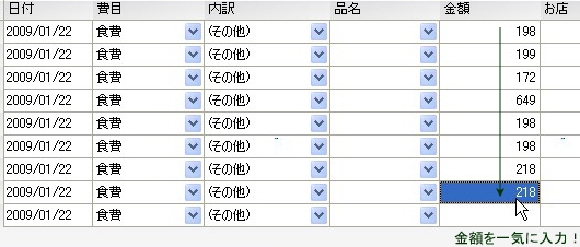 1)まずは金額を一気に入力!!(費目等はとりあえず無視)