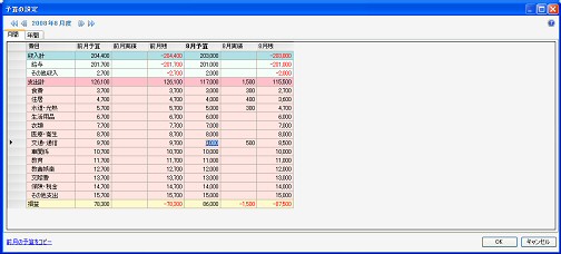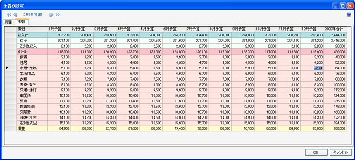 予算は、前月の実績などを確認しながら入力と1年分の入力をタブ切り替えだけで変更できます。