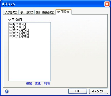日記・予定や自動記入の休日を設定します。
