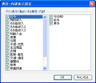 画面右上の[口座]と[費目・内訳]のリンクからグラフに表示する口座と費目を設定することができます。