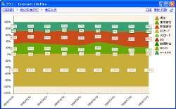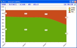 各内訳を積み上げた金額と合計を100%とした内訳の推移を確認できます。