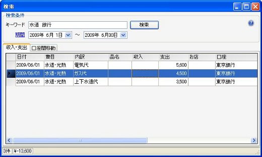 はじめに - | 初期費目設定 | 画面について | 口座について | 口座間移動について | 費目・内訳・品名について | お店について | 入力 - | 収入・支出の入力(かんたん入力) | 入力 - 収入・支出の入力(一括・レシート入力) | 口座間移動の入力 | 削除方法 | 予算 - | 予算の設定 | 自動記入設定 - | 自動記入とは | 設定方法 | 自動記入のタイミング | グラフ表示 - | 表示・操作方法 | 口座と費目の表示設定 | グラフの種類 | 予定・日記 - | 予定・日記の表示 | 休日の設定 | 検索 - | 検索方法 | マスタ設定 - | 口座の設定 | 費目・内訳の設定 | 品名の設定 | お店の設定 | レート設定 - | 為替レートについて | オプション - | 入力の設定 | 表示の設定 | 集計表の色設定 | 休日の設定 | 家計簿の選択 - | 家計簿選択画面の表示 | 家計簿ファイルの保存場所 | よくあるご質問